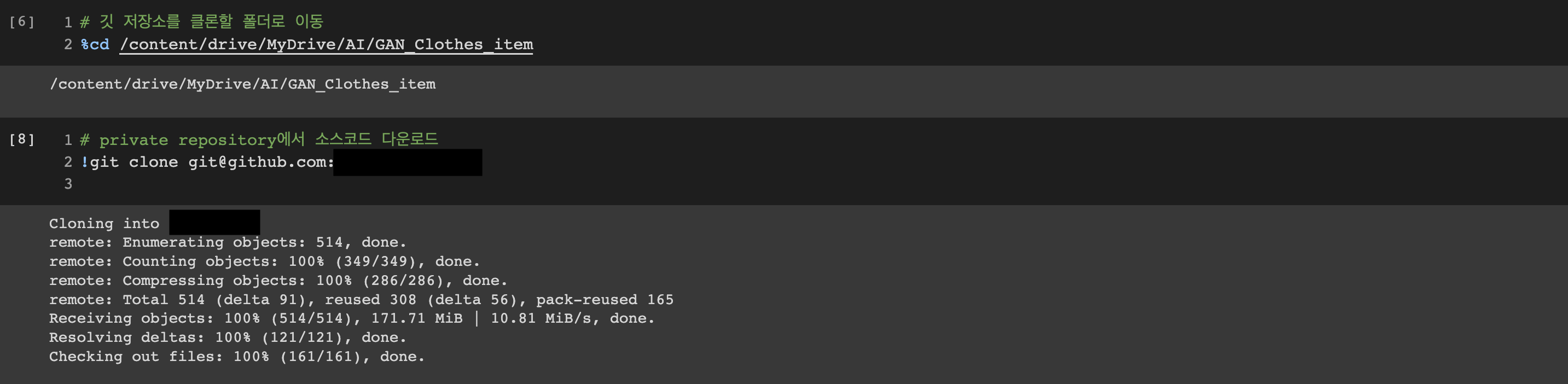 깃허브의 private repository를 코랩에 클론하기 위한 방법이다.