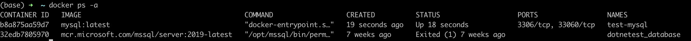 $ docker run --name test-mysql -e MYSQL_ROOT_PASSWORD=mysql1234 -d -p 3306:3306 mysql:latest