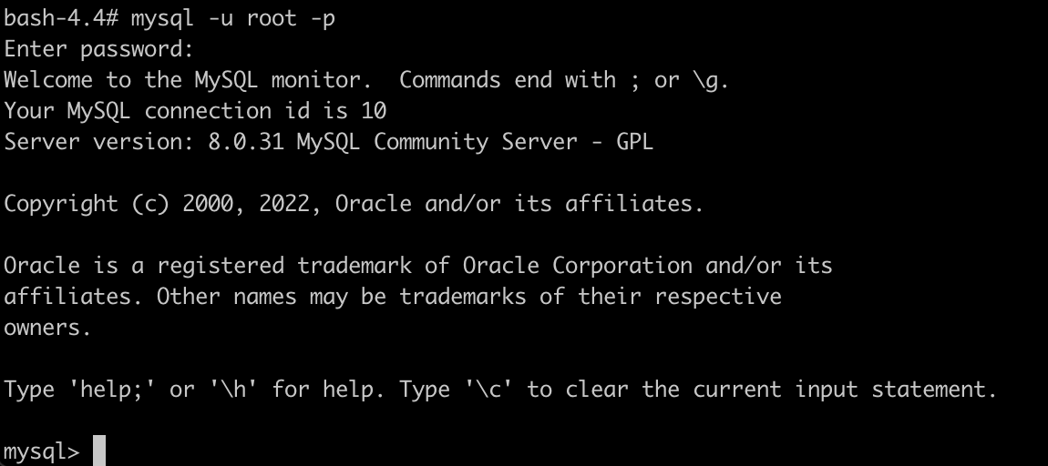 $ docker exec -it test-mysql bash