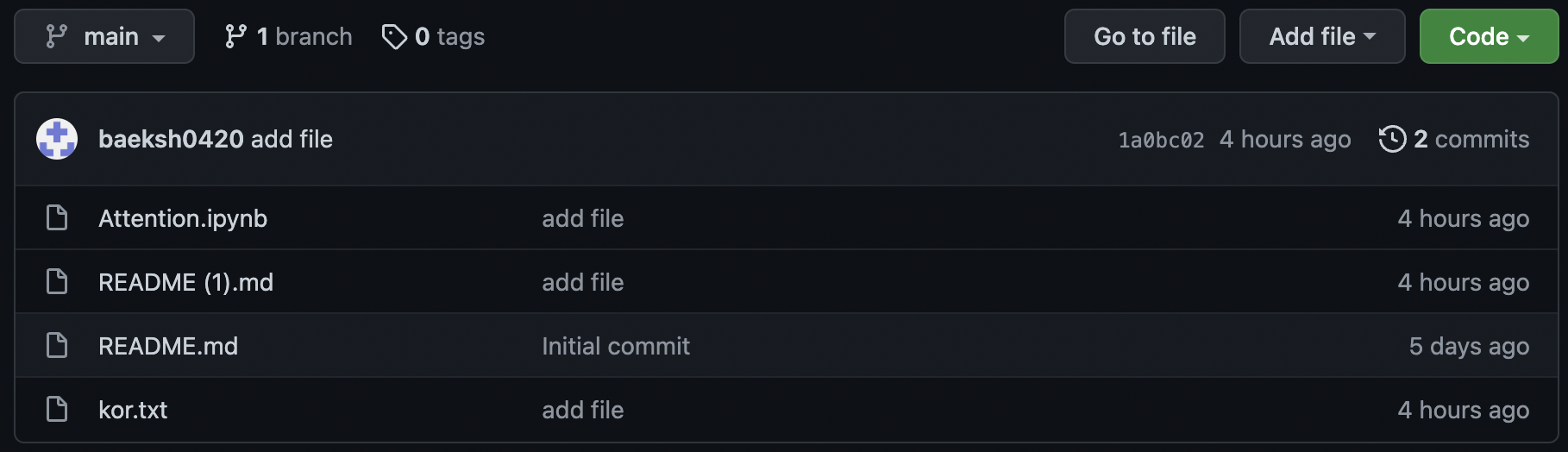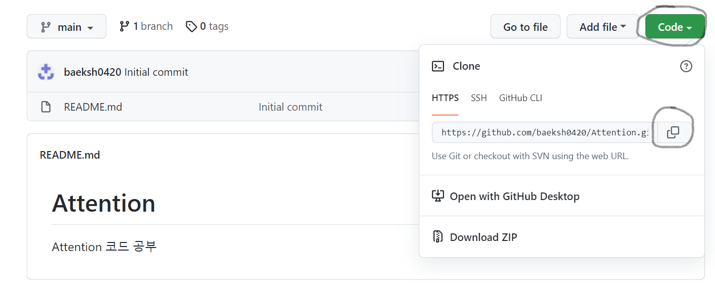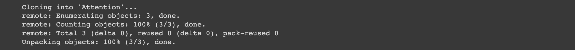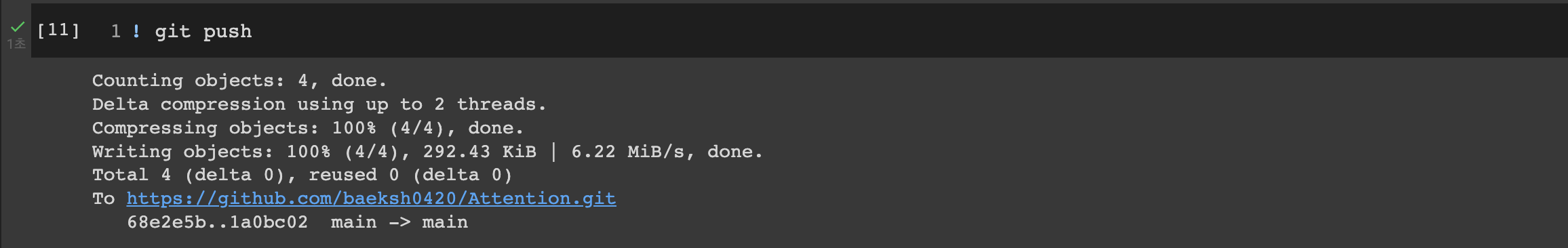 ! git clone https://사용자이름:발급받은토큰@github.com/baeksh0420/Attention.git #뒤는 깃 주소