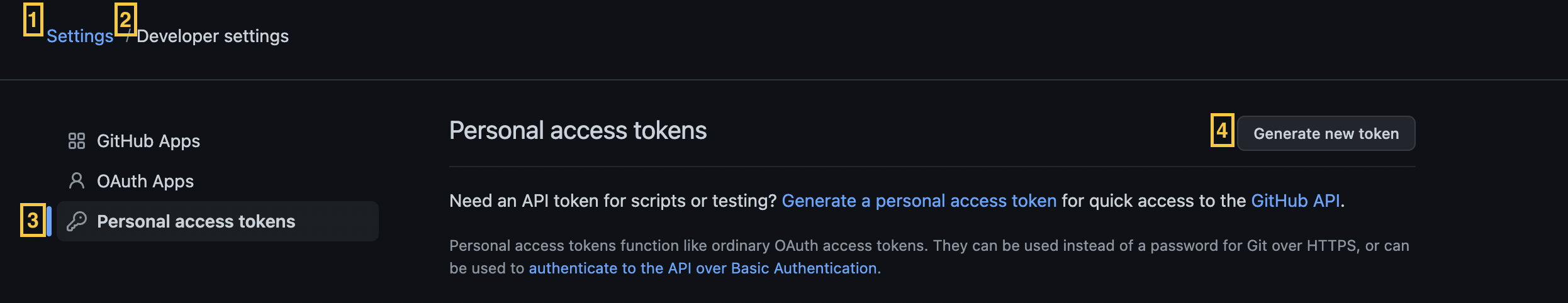 1. 접근을 위해 깃허브에서 토큰을 발급받아야 한다.